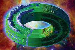 From five concepts the band decided on the Escher inspired idea of a Möbius ring world, provided it would be surfaced with realistic landscapes.